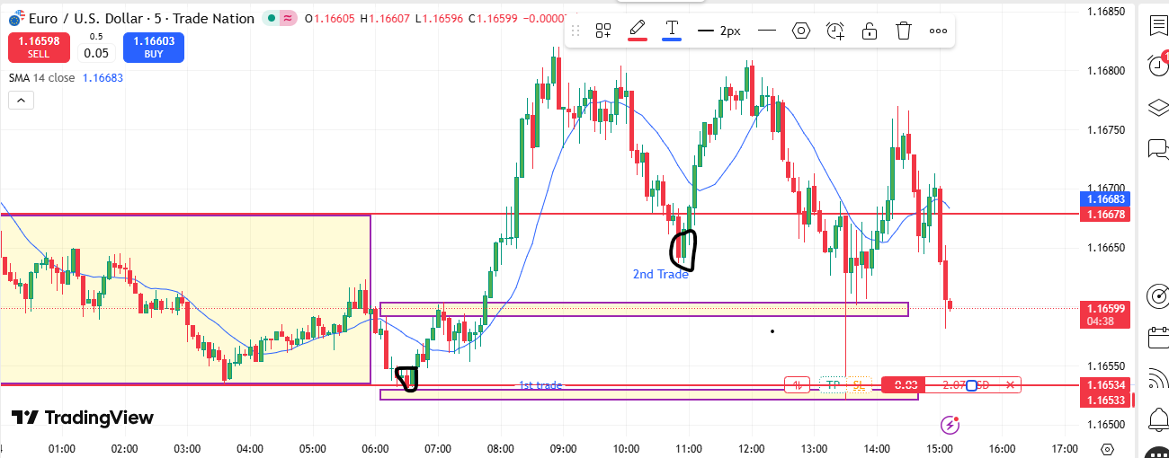 I spotted another wick at 1.1658 and if you follow the trace of the blue arrow line, you will notice a bullish engulfing pattern formed at the 1.1658 level resulting in an upward rally
