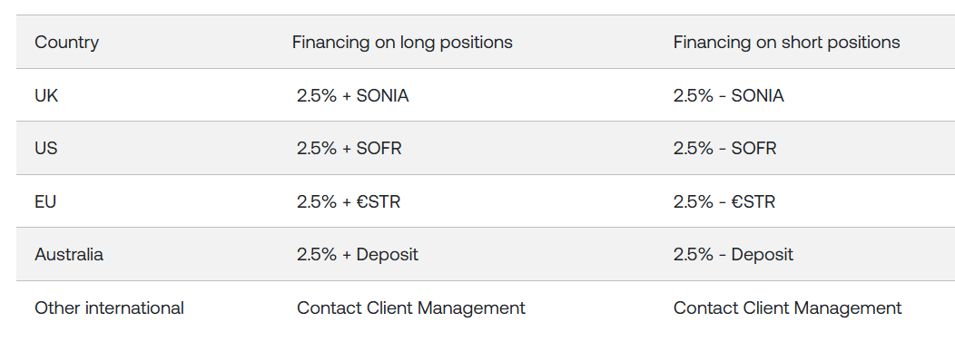 For long CFD positions, an overnight fee is charged at the base rate of your instrument plus 2.5%. For short positions, you’ll receive the base rate minus 2.5%.