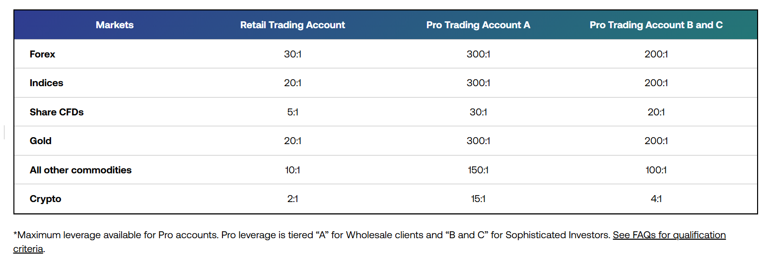 You get standard spreads and competitive pricing, with leverage that aligns with Australian regulations (e.g., up to 1:30 on forex, 1:20 on indices).