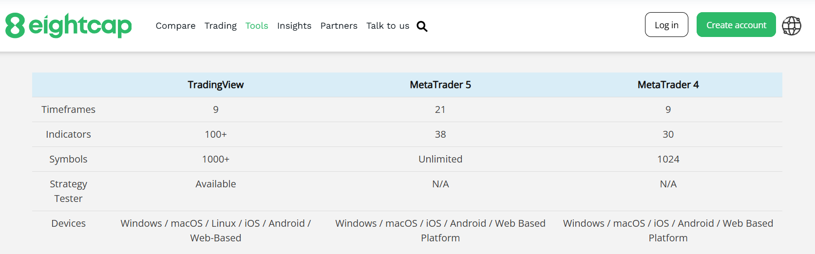 Eightcap offers the TradingView web platform so you can trade directy from the advanced charts that TradingView offers.