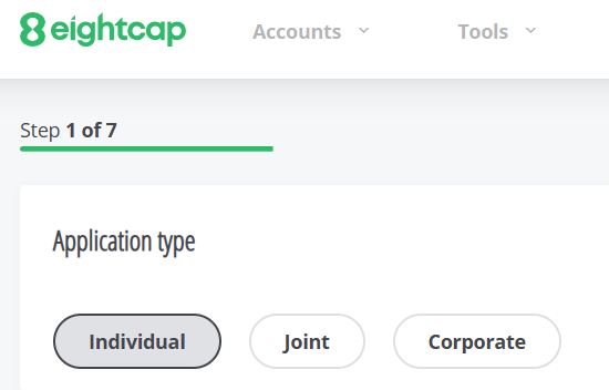 Visit the Eightcap website & click on create account. Sign in using your google account or email.