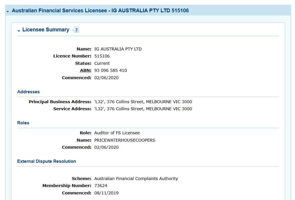 IG Australia PTY LTD is also a member of the Australian Financial Complaints Authority (AFCA) so IG clients in the Australia can go to them for dispute resolution.
