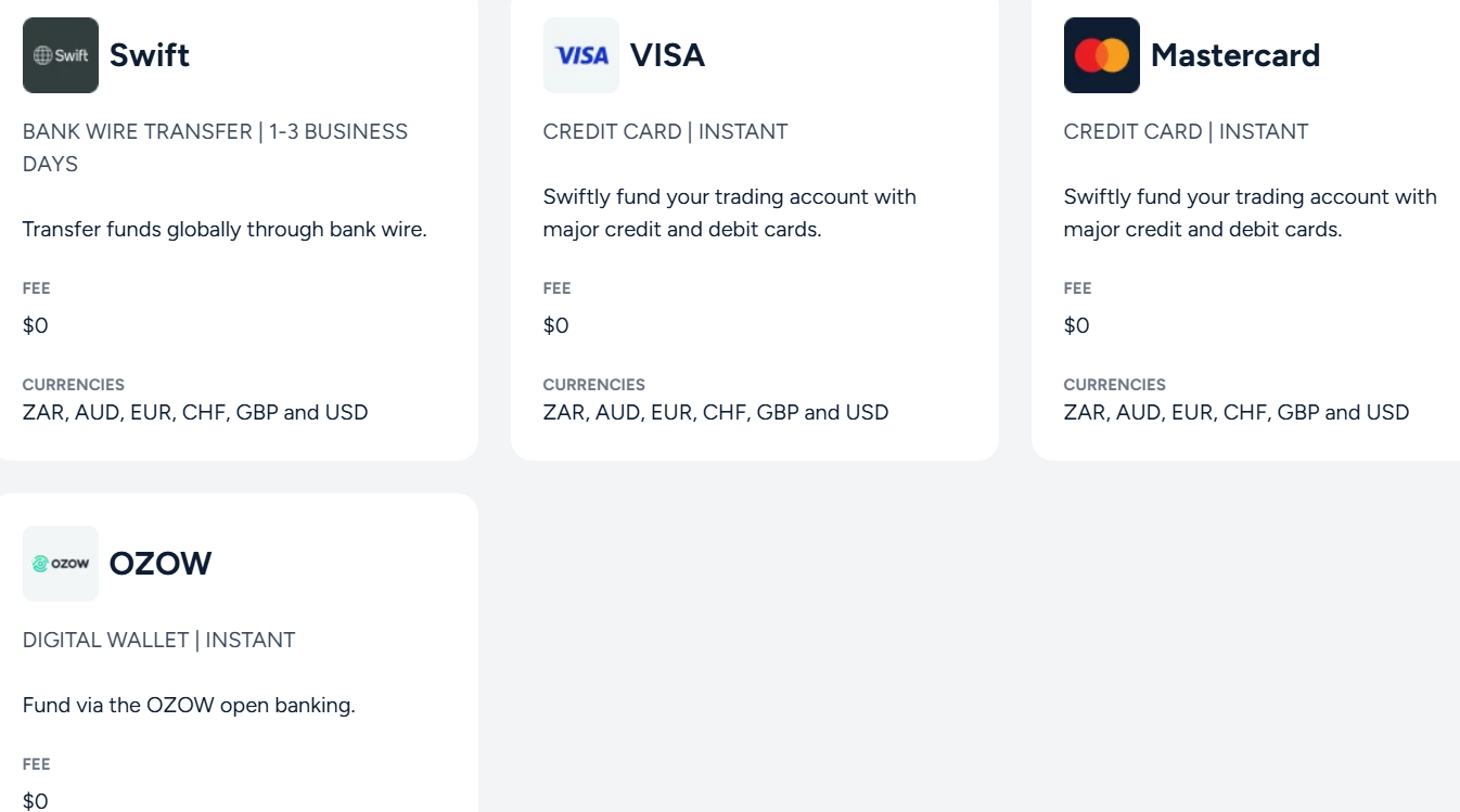 $25 withdrawal fees apply to bank wire & OZOW withdrawals. If the profit you realized from trading exceed the funds you deposited, you will be charged a withdrawal fee.