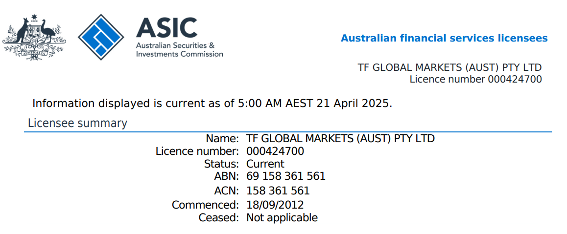 | ๐จ Broker | TF Global Markets Aust PTY LTD (Think Markets) |