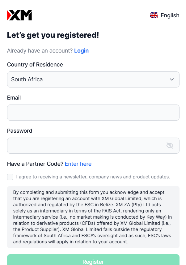 To register with XM, go to the XM Australia website and click on "Lets Get Started" or download the XM Mobile App & click on "Create an Account"
