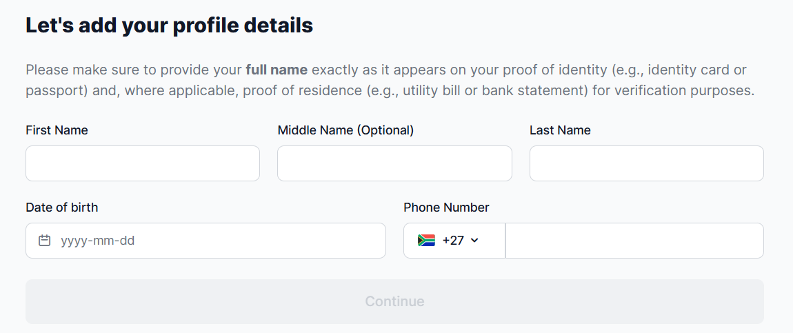Choose your country of residence, enter your email address, create a password & then click on register. A verification email will be sent t you so click on the link in the email to proceed to the next step.