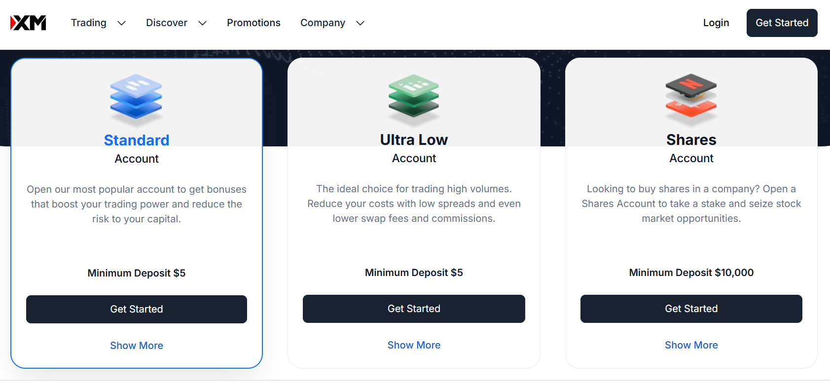 The XM minimum deposit is $5 and this applies to the Standard & Ultra-Low Accounts.
