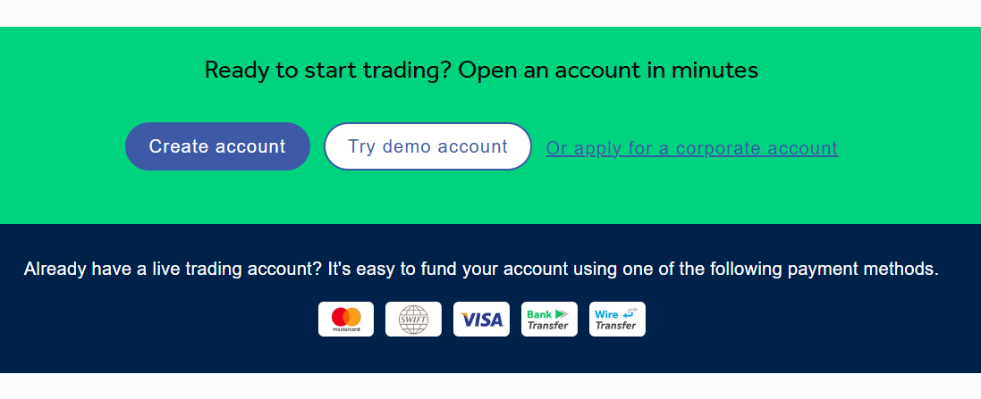 Local Bank Transfer, Bank Wire & Cards are accepted deposit methods at Oanda. Card & Local Bank deposits are usually instant while Bank Wire can take up to 5 days.
