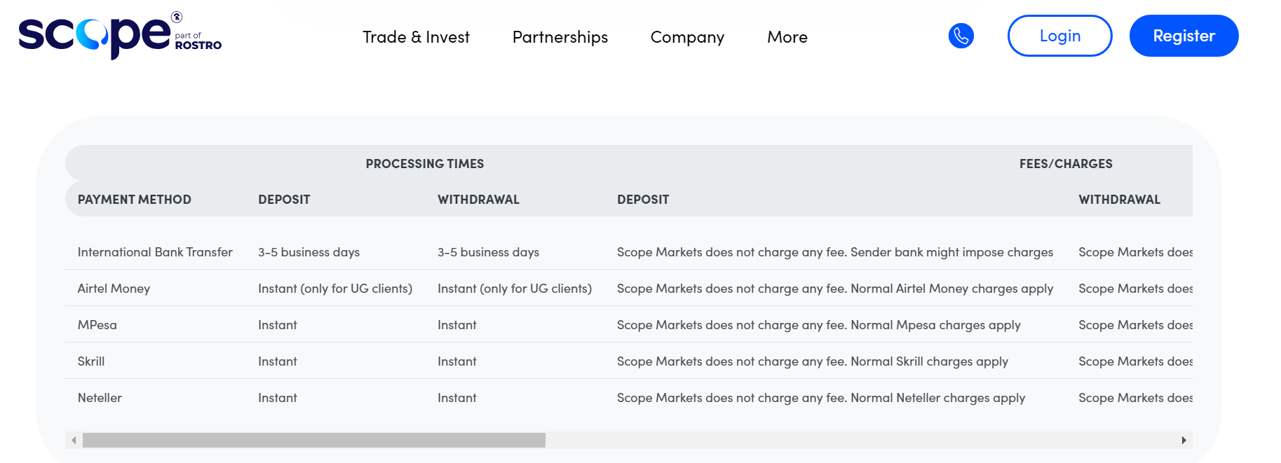 Does Scope Market Charge Deposit Fees?