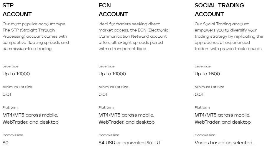 | 📋Account Types | STP, ECN |