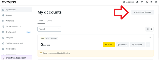 Please note that Exness does not create an electronic wallet for you after registration (some brokers do this). Instead, after registration, Exness automatically creates a trading account for you.