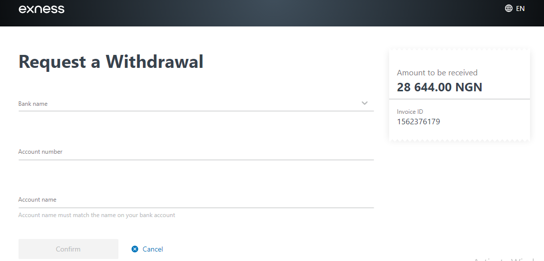 Wait for a confirm action message message to be sent to your Exness Trade Mobile App then click on "confirm".