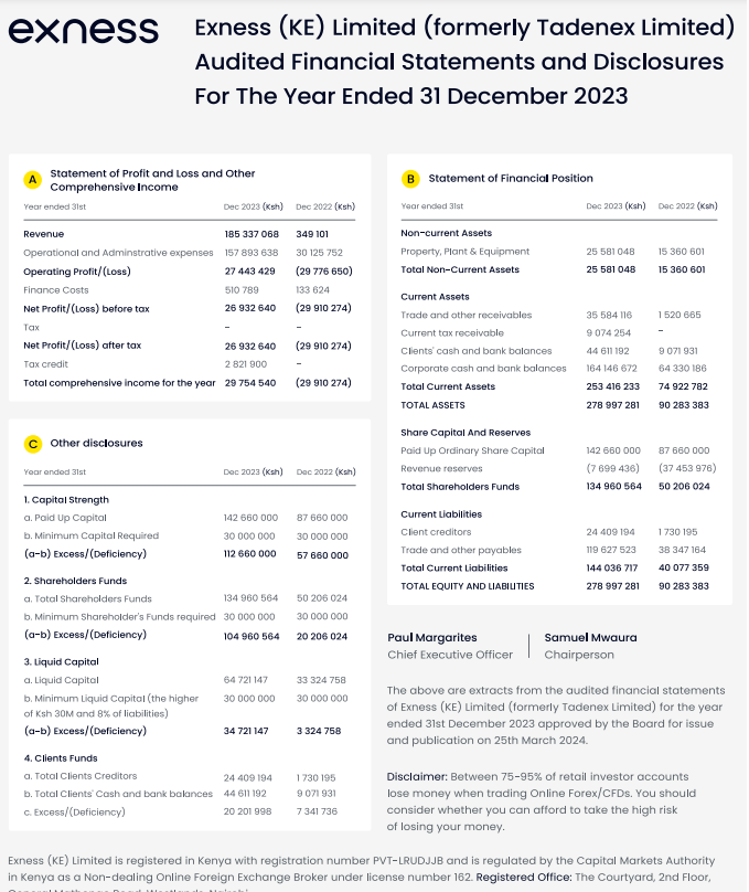 Exness KE Limited is also a legit audited forex broker and publishes its financial statements on its website.