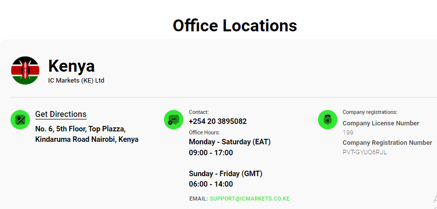IC Markets has a business office in Nairobi, Kenya.