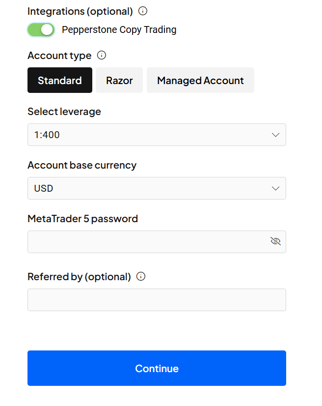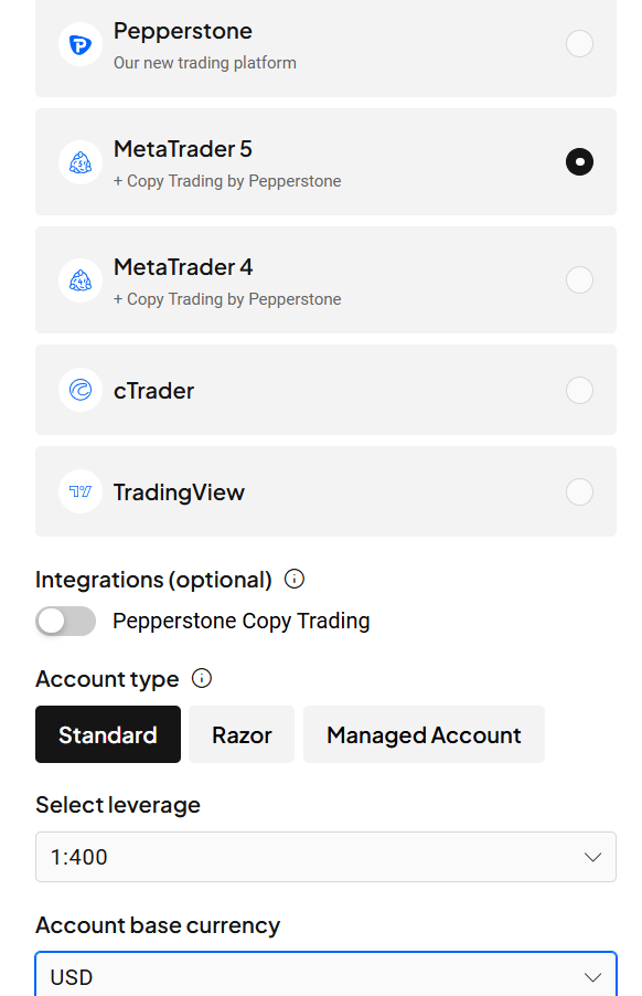 Pepperstone also offers managed accounts so at the point of opening your account, you must select if your account is going to be managed by an authorized online forex money manager.