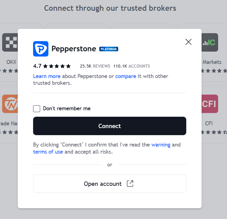 Pepperstone traders who open the Razor Account can go to the TradingView website and connect their accounts to TradingView charts.