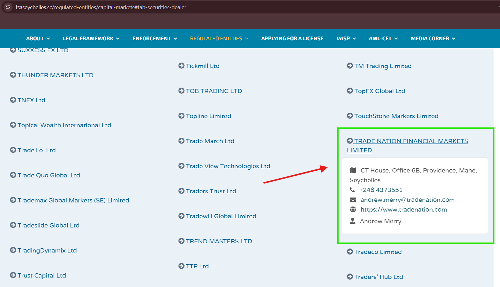For example one of our best forex brokers in Nigeria, Trade Nation; claimed to be regulated by the Financial Services Authority (FSA) in Seychelles. We were able to confirm this claim by going to the FSA website and checking their register of regulated entities.
