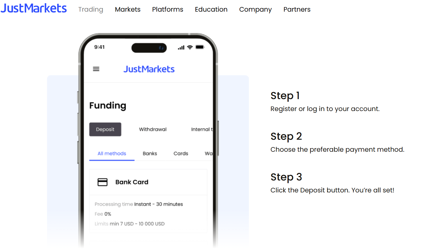Note, that Raw Spread Account users don't qualify for the Just Markets Welcome Bonus, so to get the bonus you should open a Standard or Pro Account.