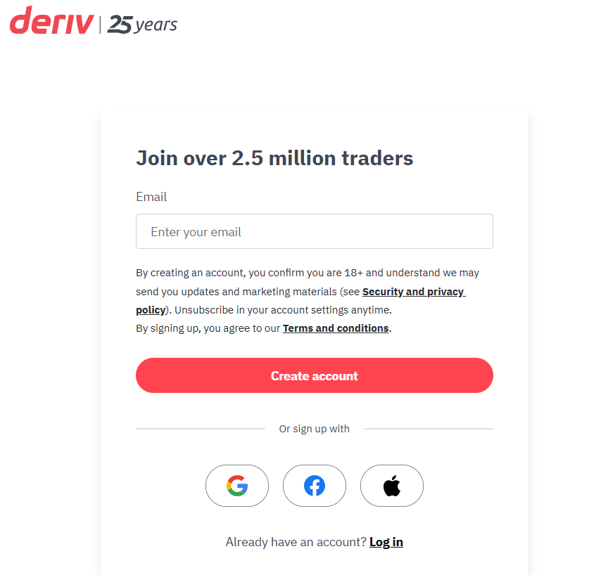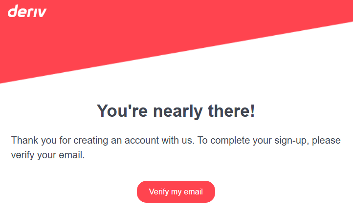 Visit the Deriv website, click on "open account", enter your email address & click on "create account".