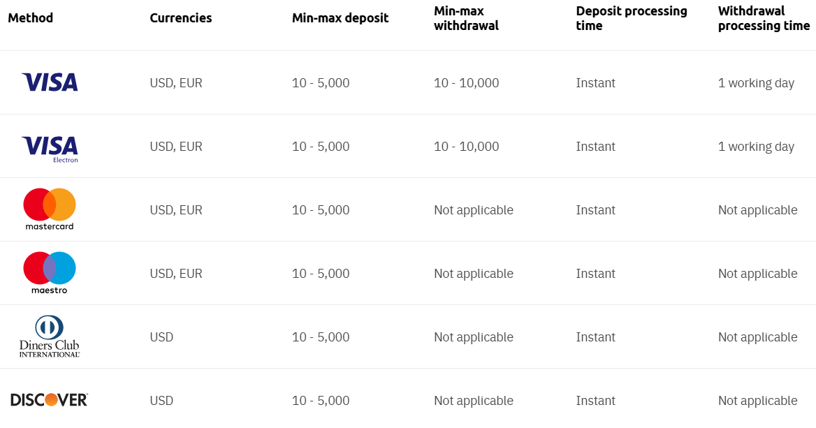 The minimum deposit for card deposits at Deriv Nigeria is $10 & we are talking Visa, Maestro, Discover & Diner Club cards.