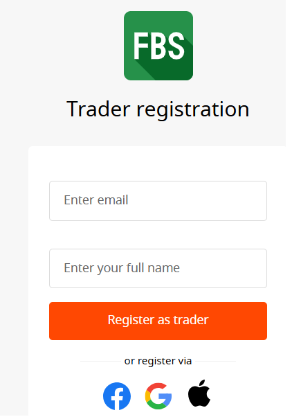 You’ll be directed to the Trader registration page, where you can input your email and full name to register, or you can register with your Google account, Facebook, or Apple account.