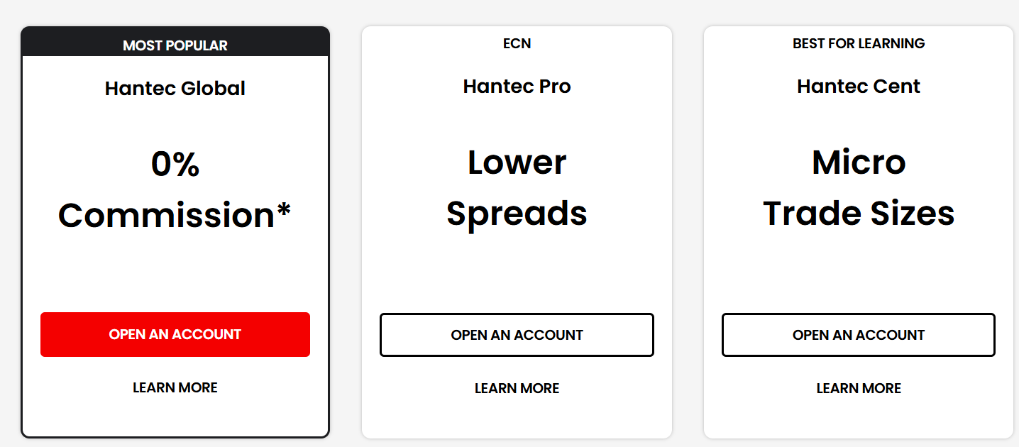 Hantec Markets minimum deposit is set at $10 for all its account types.