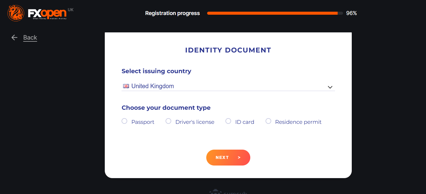 Snap & upload your Passport, Drivers license, Residence Permit or ID Card; so FXopen can use it to verify your identity.