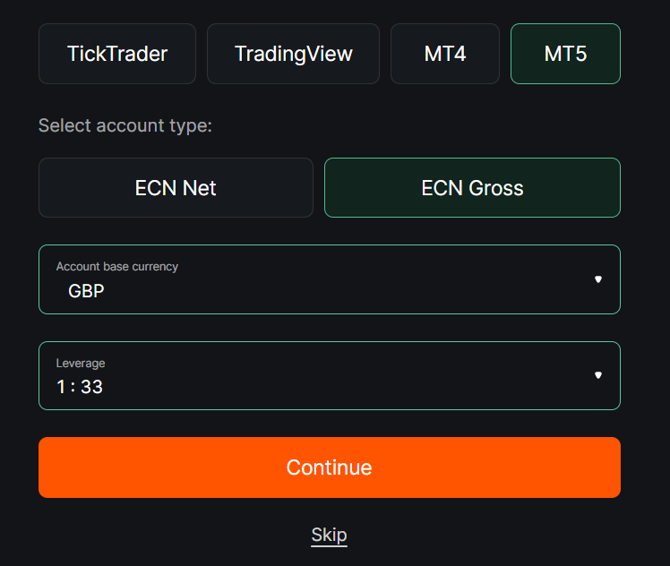 Enter your name exactly as it appears on your ID, complete some survey, enter your UK phone number to enable 2FA, then select your preferred account type.