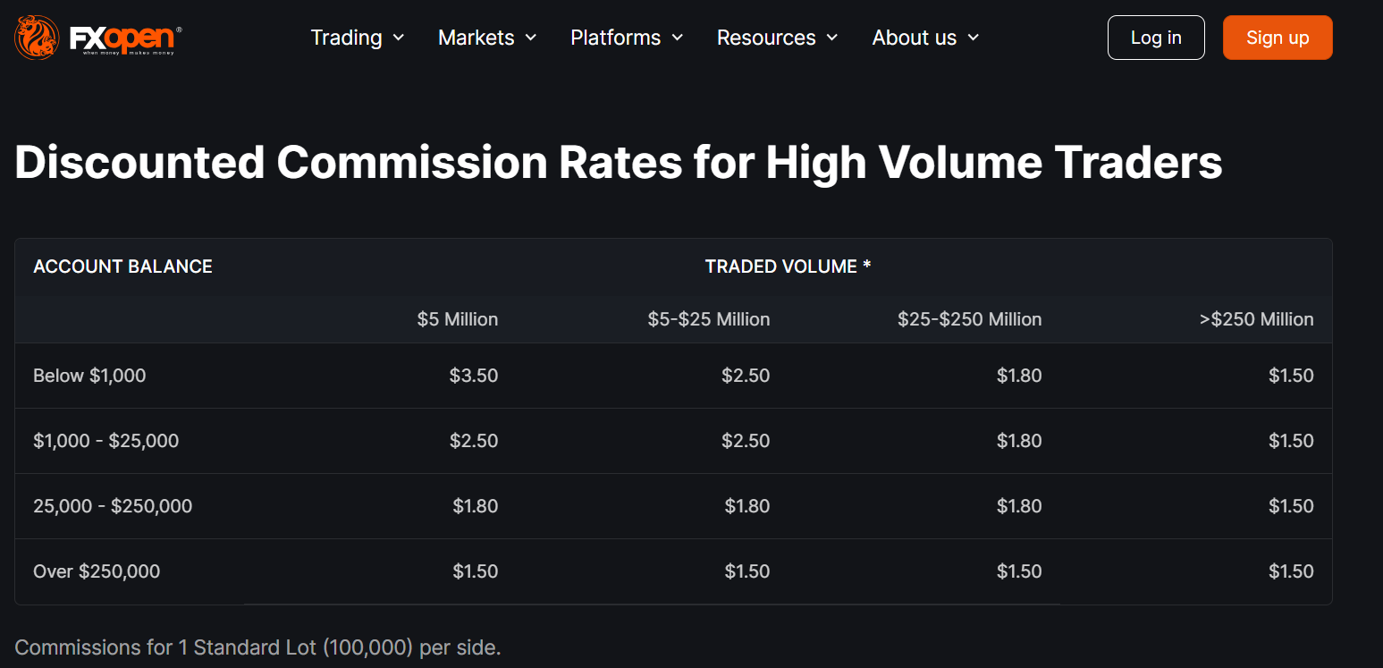 For example even if your account balance is below $1,000 & you trade a notional value of $250 million, you will still pay lower commission of $1.50 per side etc.