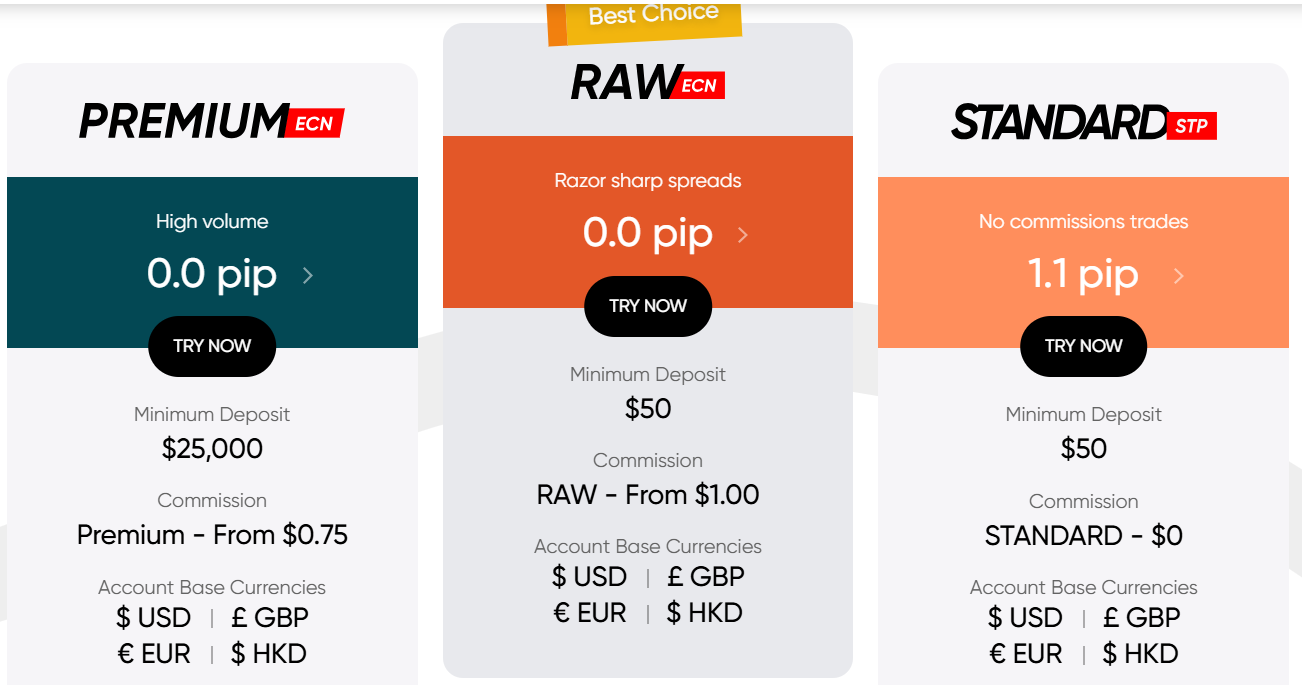 on the Raw Account, spreads start from 0.0 pips but on the Premium Account (the account with the highest minimum deposit of 25,000 USD), the spreads start from 0.75 pips.