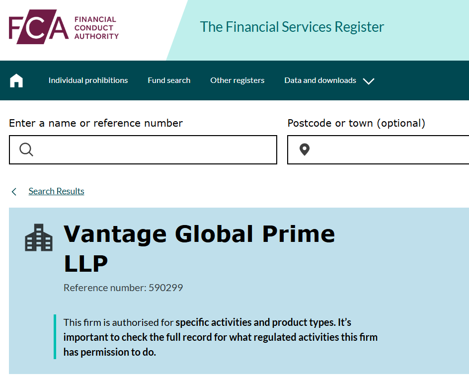 Yes, Vantage is a trading name used by Vantage Global Prime LLP, who are authorized to operate in the UK by the Financial Conduct Authority (FCA).