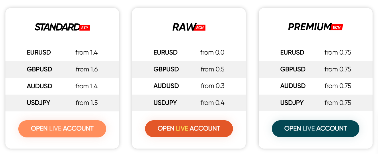 Because the Raw & Premium Accounts offer lower ECN spreads, you must pay a flat commission of 1 USD per side on the Raw Account & 0.25 USD per side on the Premium Account.