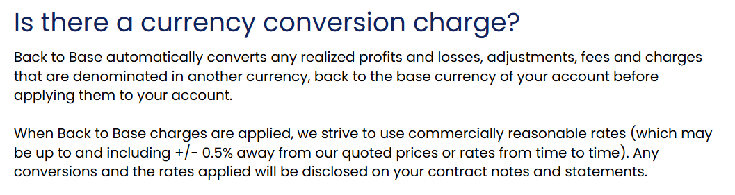Essentially it means if you are trading a currency pair or instrument in a currency other than your base currency, the broker will charge you a fees every time.