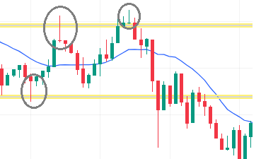 In this image you can see the little wicks followed by a trend reversal. The wicks are most useful when they appear at the top or bottom of a trend.