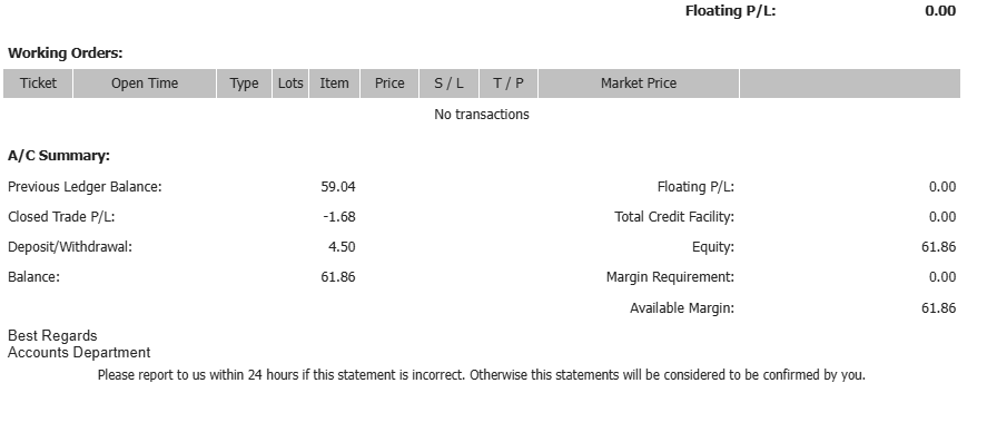 The forex broker sends you a daily confirmation (basically your account statement) on a daily basis and they expect you to study it and if you see any error you let them know on the same day. If there is an error in your bank statement and you do not notify the broker on the same day, they will assume you accepted the correctness and they will not be legally liable to refund you.