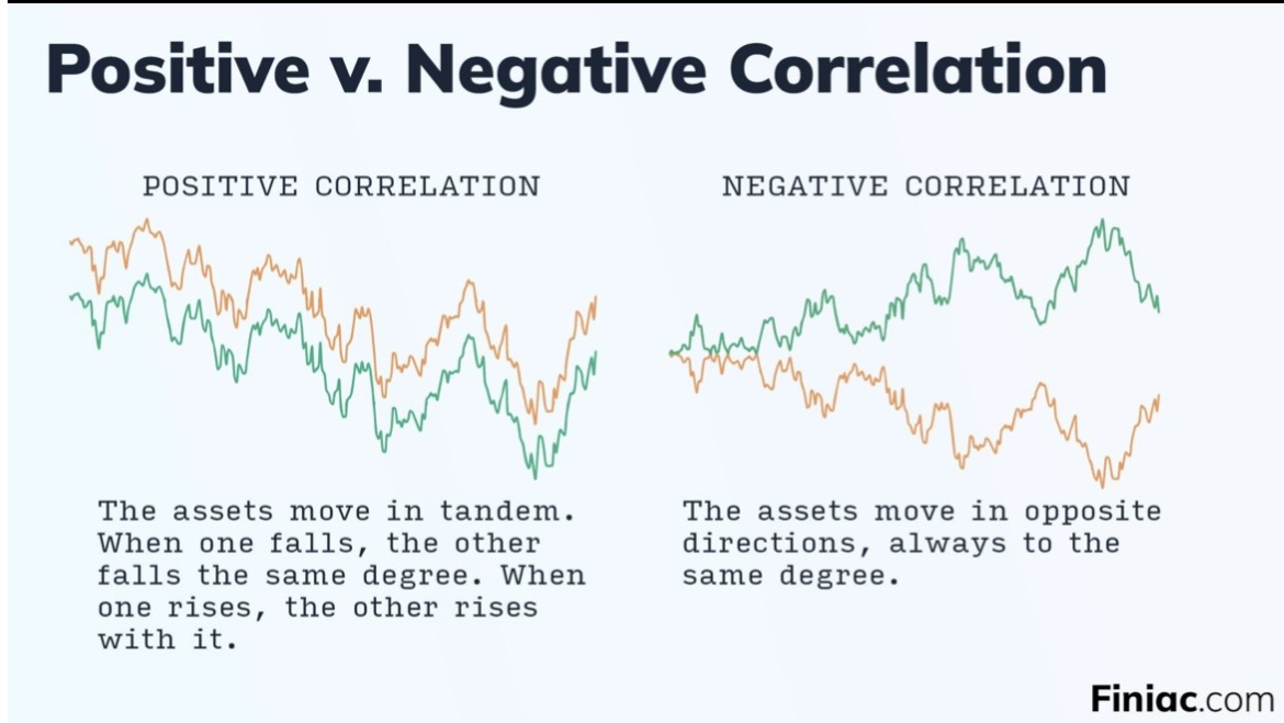 Correlation means two things move together—but one does not necessarily cause the other.