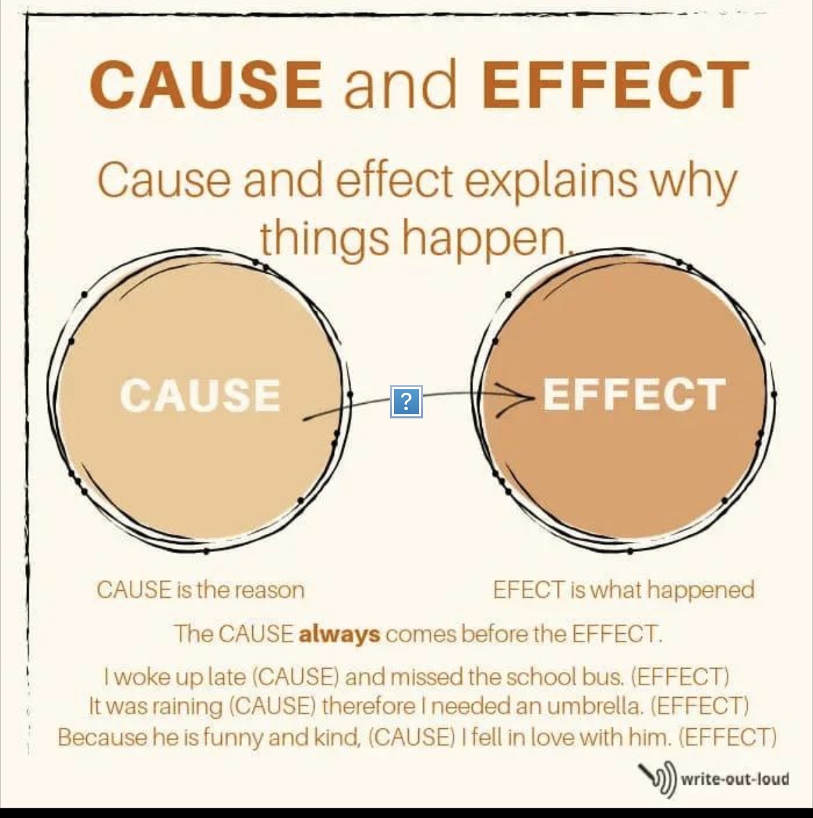 Causation means one thing directly causes another to happen.