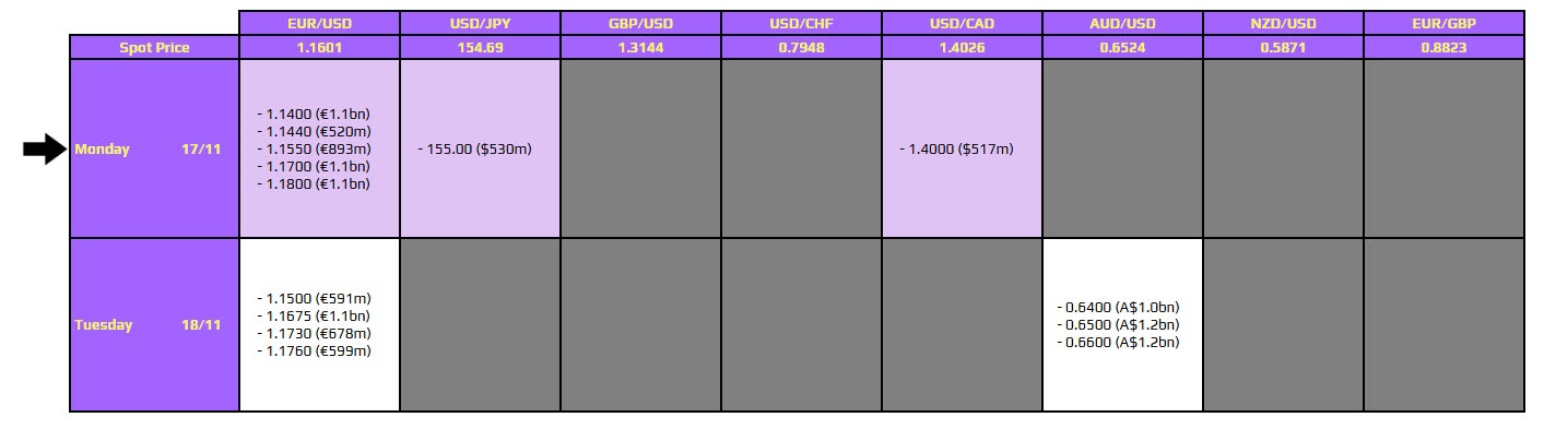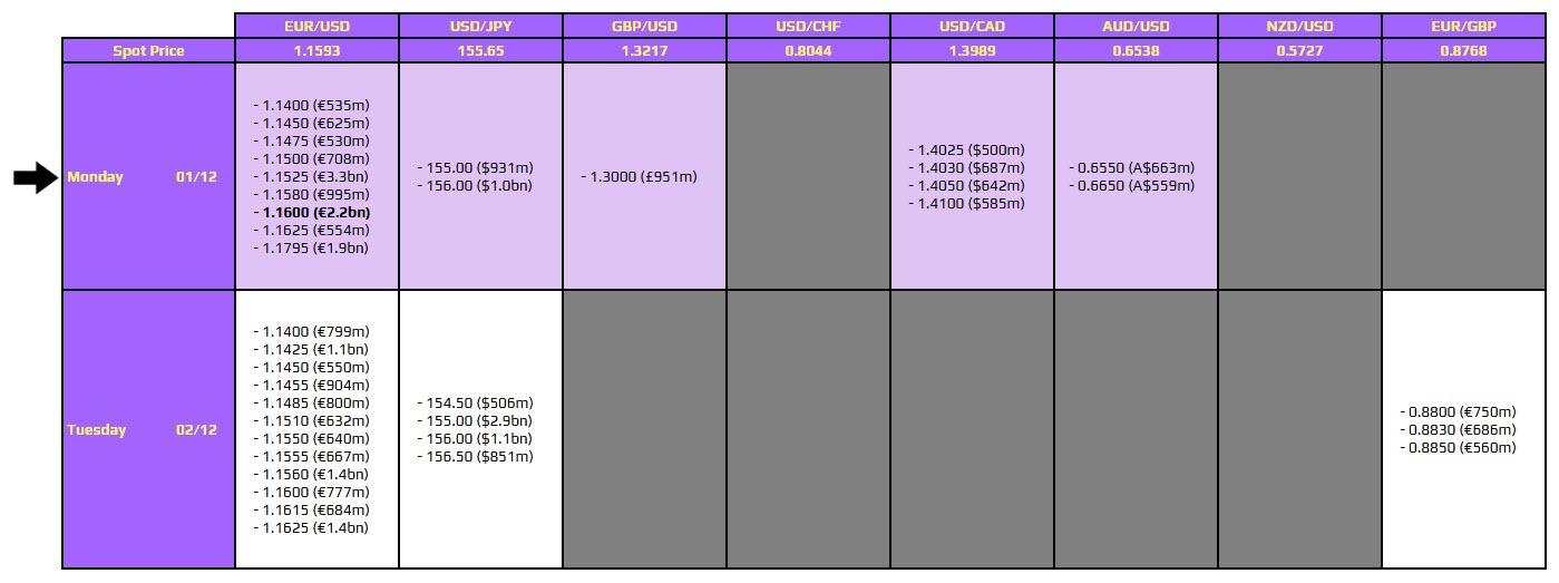 EUR/USD expiry at 1.1600 - 1.4bn EUR