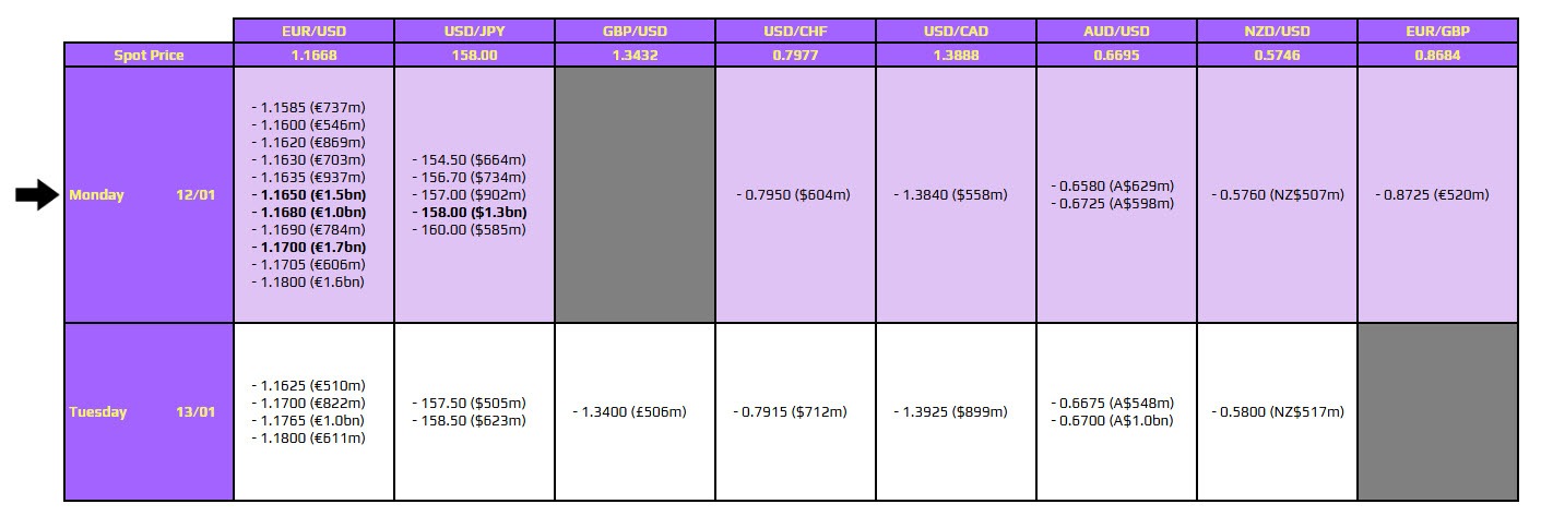 Daily FX Options Expiring by 10 AM New York Cut
