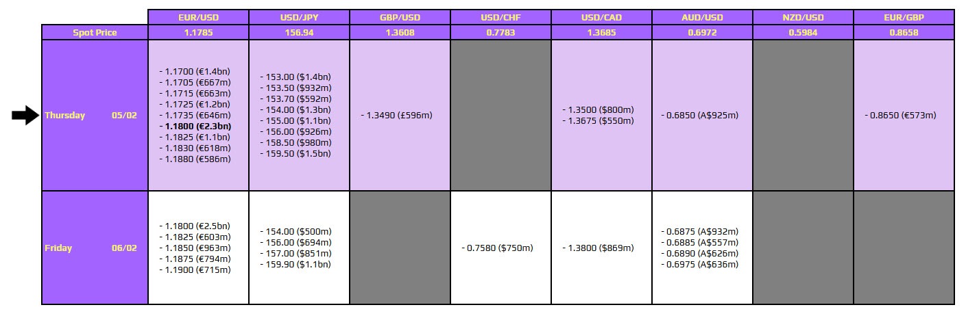 Daily FX Options Expiring by 10 AM New York Cut