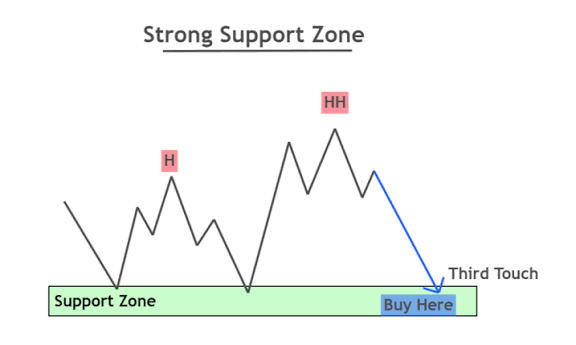 The support zone is a price level where buyers usually come in. That level prevents price from falling further.