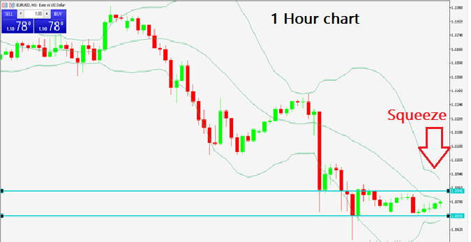 I use the Bollinger Bands Indicator on the 1 Hour chart and it shows a squeeze.