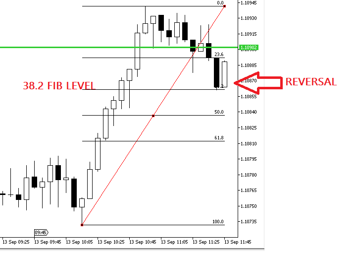 I PLACE MY STOP LOSS AT THE 38.2 FIBONACCI LEVEL BECAUSE MOST REVERSALS IN A TREND HAPPEN THERE