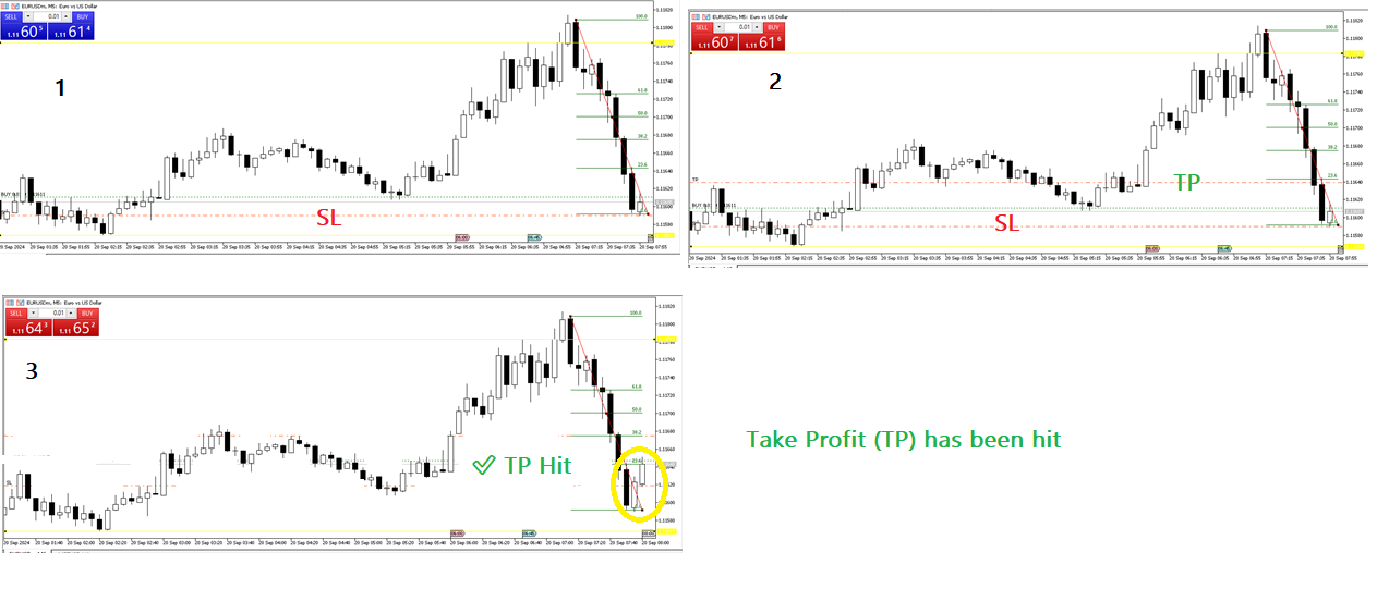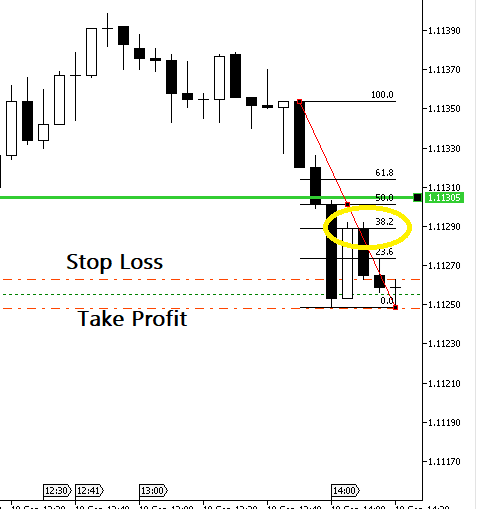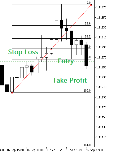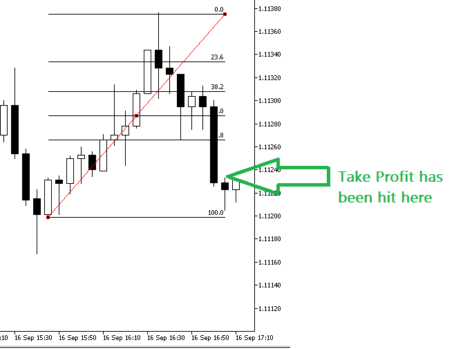 I set my Stop Loss near the Fibonacci level of 38.2 then set my Take Profit (TP)