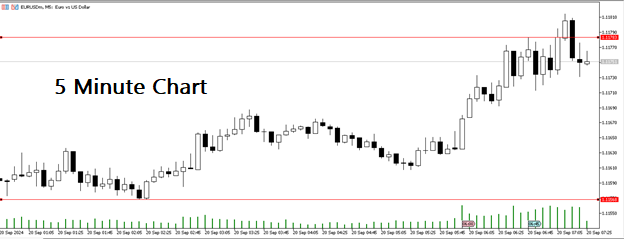 In the second chart I set my Take Profit (TP) above the upper wick of the preceding candlestick.