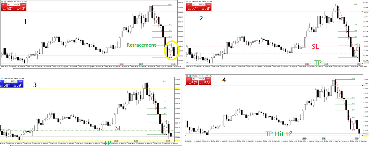I quickly open a Sell Trade to benefit from the potential downward movement of price.