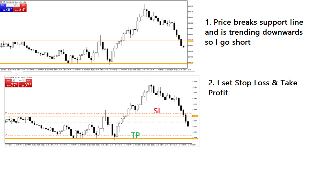 I place my Stop Loss (SL) above my entry price and place my Take Profit (TP) at a point where i noticed that price met some resistance.