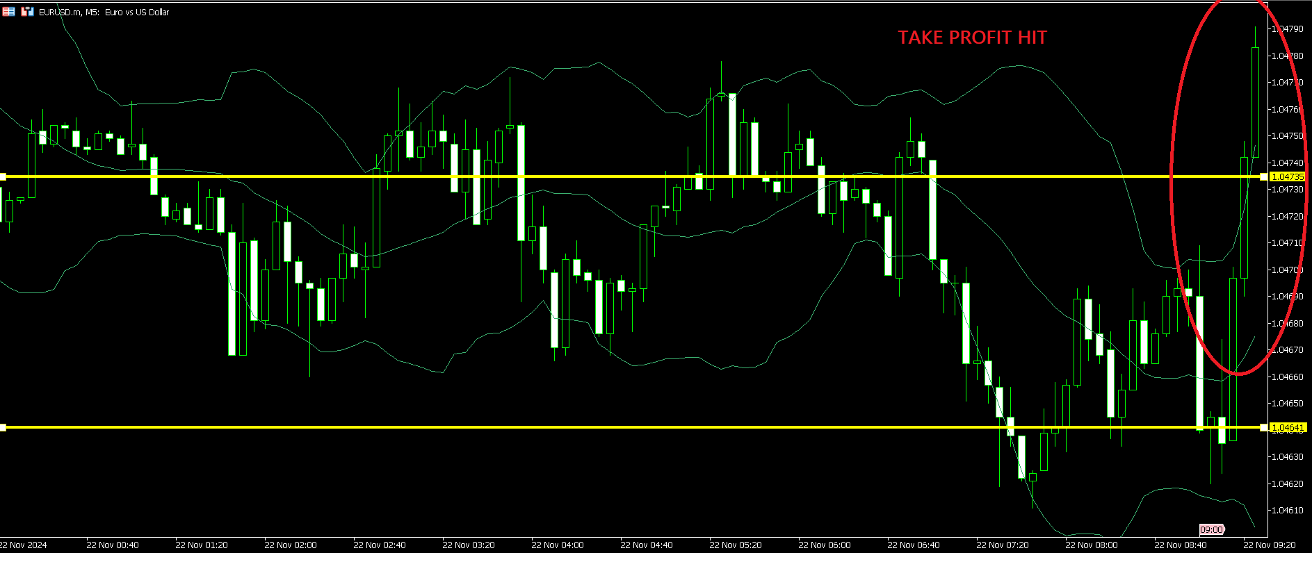Price moves downwards towards my Take Profit & triggers it. I exit the market with profit.