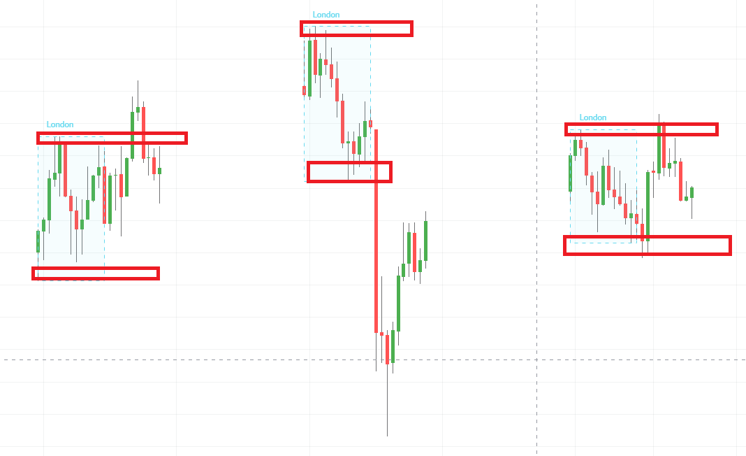You have the edges acting as SR levels. Look at the example from this last week of the NY session & London session.