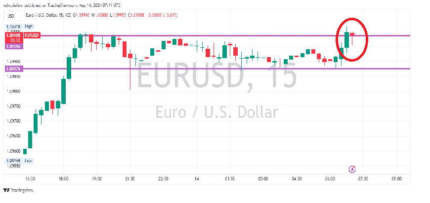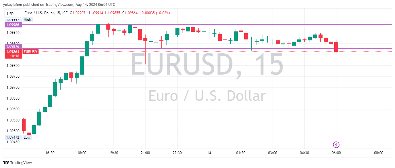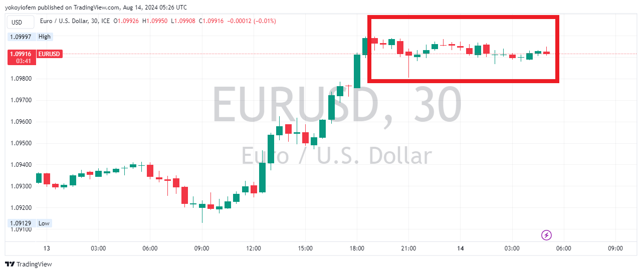 14 august 2024. EUR/USD is in a sideways trend with doji candles signifying indecision in the market